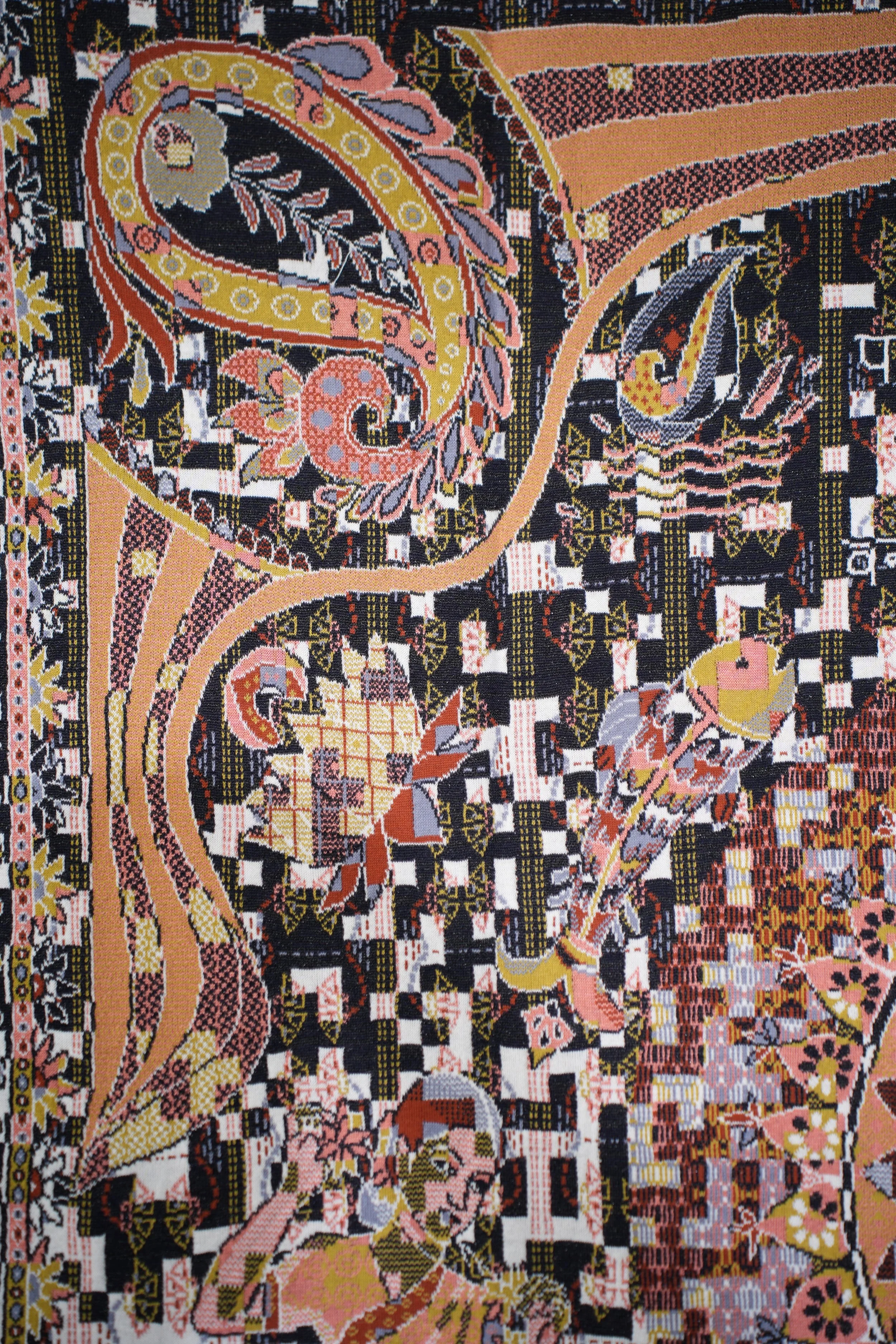 Hand-crochet on 6 colour computerized-knitted jacquard in bamboo and cotton yarn