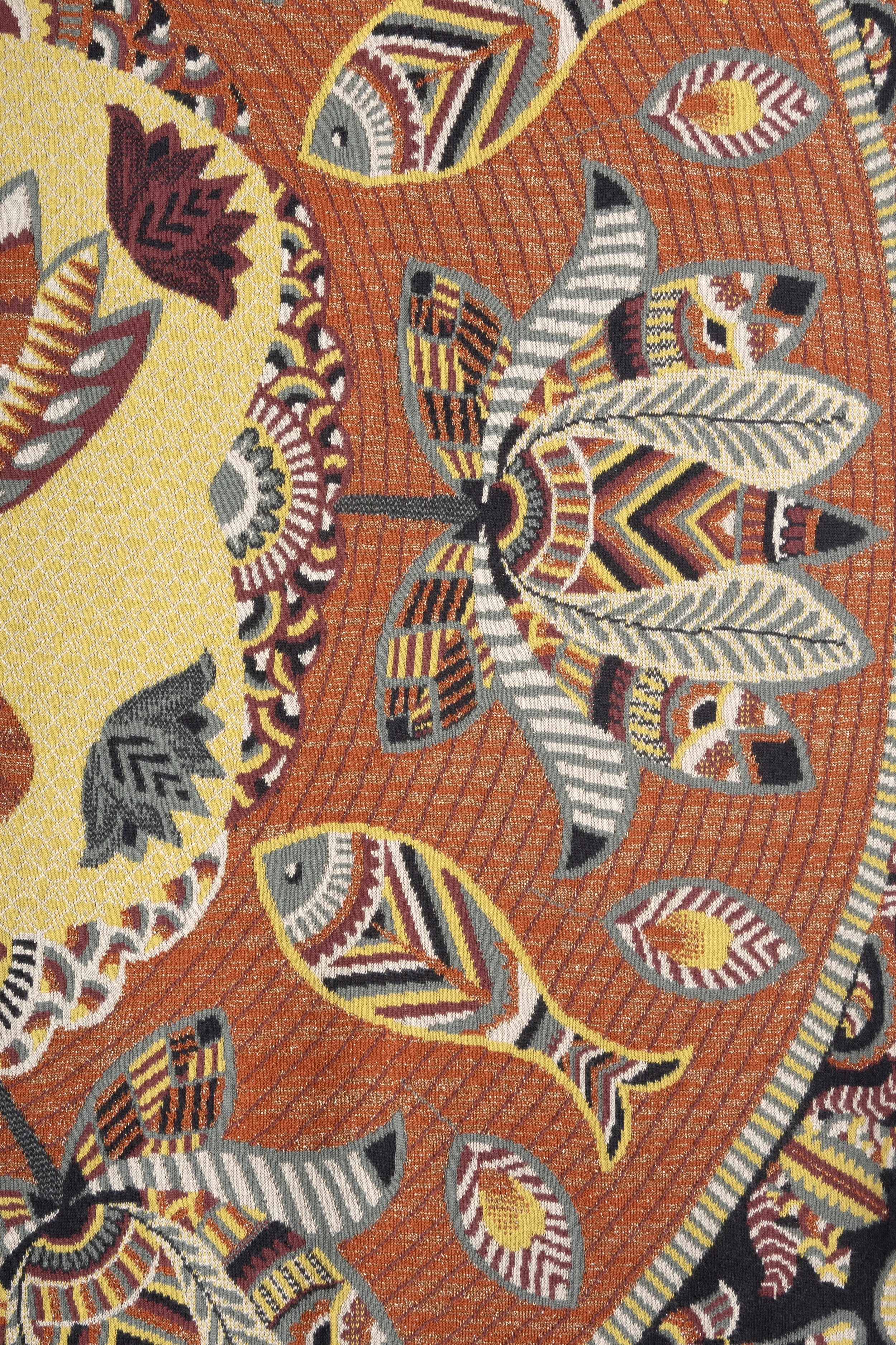 6 colour computerized-knitted jacquard in bamboo, cotton and metallic yarn